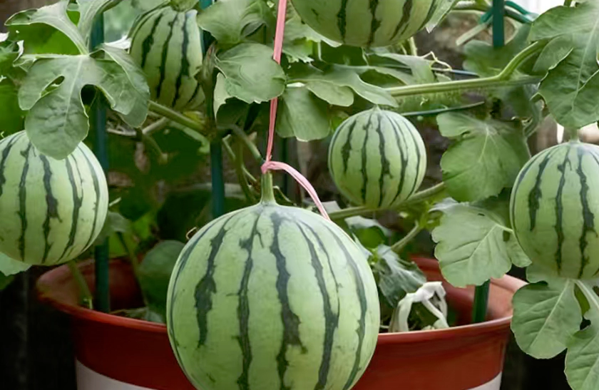 2. Train the “Green Giant” Watermelon vines grow like crazy! Use a trellis and train them in an “S” shape. If you don’t manage the vines early, your balcony will turn into a jungle faster than you think.